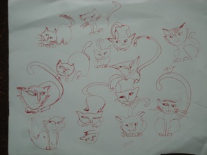 Nieuw ontwerp in klei; De kat nu in een ‘spannendere’ positie ten opzichte van de liggende dame en het idee van het willen ontsnappen van de kat om achter de vissen aan te gaan. En Dame drie>>