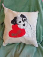 Een T-shirt met textielverf beschideren, een kussen maken? ik heb een naai-machine en garen op het Atelier;-)