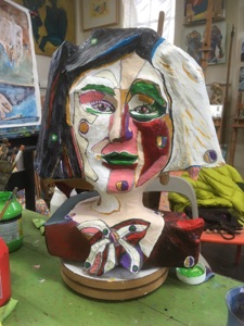 Een Papier-Maché Project begin je met een tekening en dan een gaasfiguur,