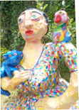 Vrouw met blauwe aap en vogel Het werk is een zelfportret een vrouw met twee dieren: een blauwe aap en een vogel die veel weg heeft van een papegaai.
