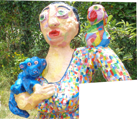 De fantasie en het verlangen, geloof (de vragen die niet gesteld werden), de onschuld van het hele gebeuren en de last van de leugen die te zwaar werd De gezichtsuitdrukking (het drama, de leugen) van de vrouw, de kleur blauw(onschuld, kinderen) van de aap, kleurrijke vrije fantasie in de vogel (praten en vliegen)