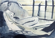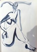 Na een aantal pogingen om de haas figuur in mijn schilderijen op te nemen zag ik de mogelijkheden van deze figuur om er menselijk uitdrukkingen en houdingen in te verwerken.