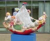 Oorspronkelijk stond het beeld buiten op een hoge paal zodat het bootje mee bewoog met de wind.
