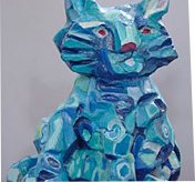 Blauwe pers is een eerste experiment met een kattenbeeld omdat me tijdens een expositie gevraagd werd waarom ik alleen honden maakte?