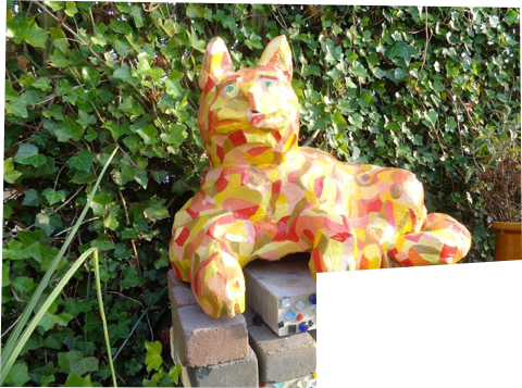 Oranje kater is en project met Paverpol, Textielverharder, kan ook goed met papier verwerkt worden maar ideaal zijn dunne linnen lapjes. Handlayed aangebracht.