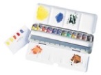 Aquarelpapier, waterverf, oostindische inkt, chinese penselen, houtskool, gouache, aquarel potloden, pastelkrijt en fixeer en lijm. Inclusief thee en koffie, kleine ruimtelijk obhecten maken.
