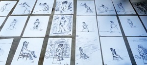 Je vergeet, door je concentratie, dat er een “levend naakt model” voor je staat!.