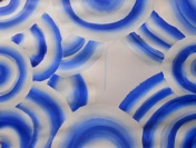 Eerst op papier oefenen met de verf en de kwasten om de verschillende schildertechnieken te leren kennen en uit te proberen