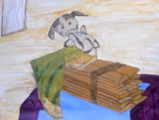 Een schildersdoekje 30 x 30 cm, tekenpapier