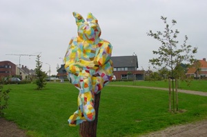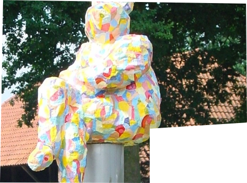 Klei, PUR, Gips, papier-maché, wol en haaktechnieken en uiteindelijk Polyester zijn de materialen waar ik nog steeds mee werk.