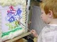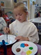 Na een korte inleiding, op niveau van de leeftijd, gaan de kinderen aan de slag met penselen en verf achter een echte