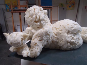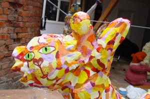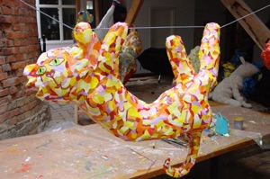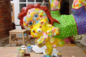 In het begin met Papier Maché, later voor de vraag naar buitenbeeld met Polyester.
