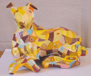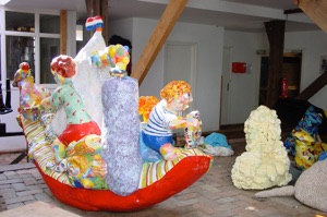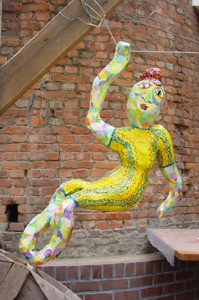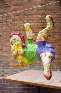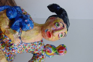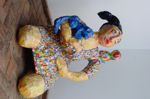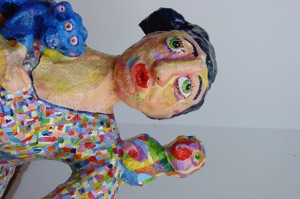 De figuren en dieren die mijn schilderijen bevolken zijn ook een inspiratie bron om ruimtelijke beelden te maken.