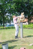 -op een RVS paal de haas plaatsen van 2 meter, diameter 25-30 cm, volstorten met