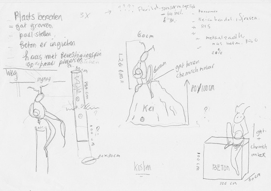 -Bij de “kei sokkel” en “beton sokkel” wordt er een gat geboord, stalen