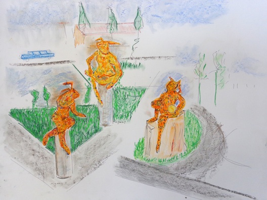 Denkbaar is ook dat een beeldengroep van drie hazen of meer bijeen op een passende sokkel geplaatst worden bij één van de ingangen.